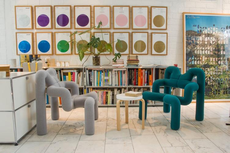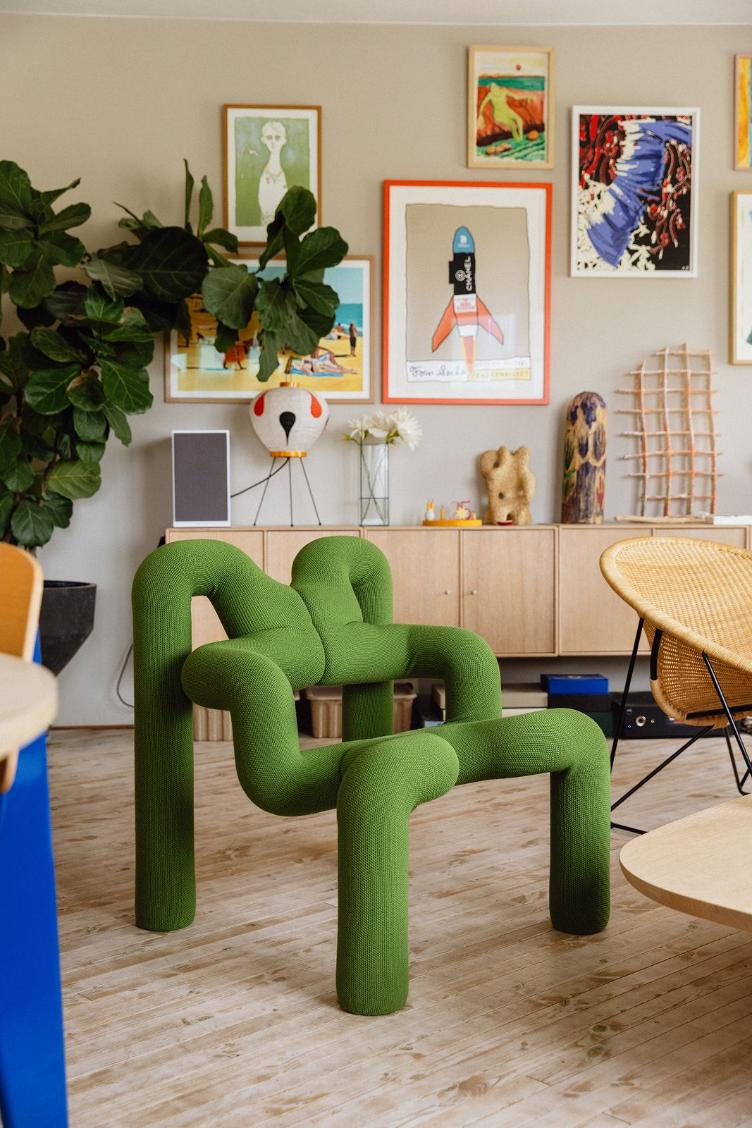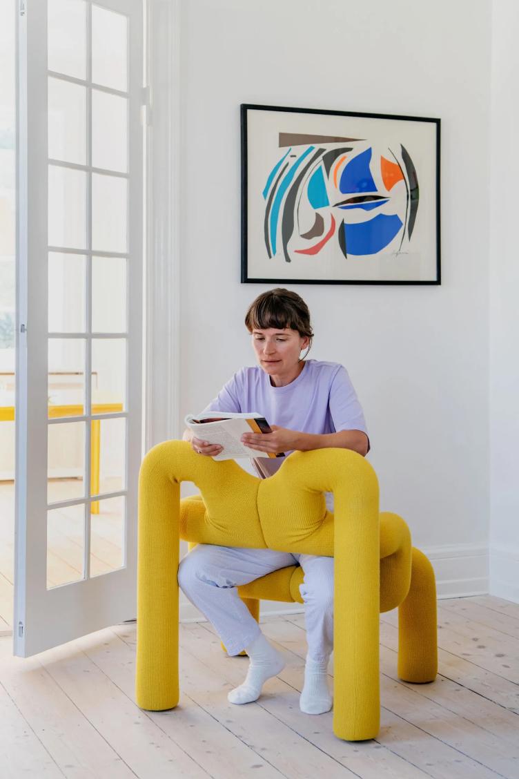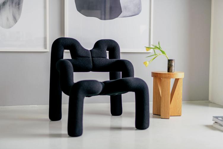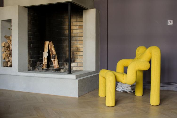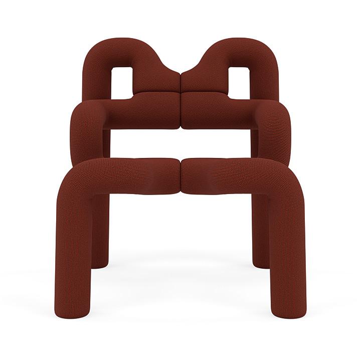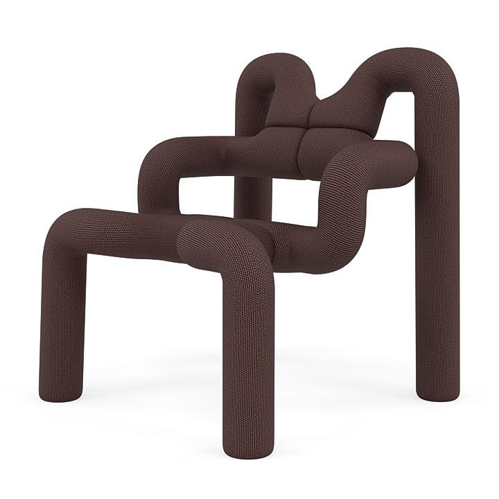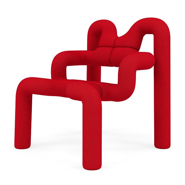 The Ekstrem armchair by Varier is more than just a chair – it`s a standalone object and one of Norway`s first postmodern designs. The Varier armchair consists of a steel frame covered with soft foam and wool knit. The covers are available in two fabrics: Knit, a soft, breathable wool fabric with a classic square knit pattern, and Gentle, a knitted velvet with visible seams (see `matching products`).