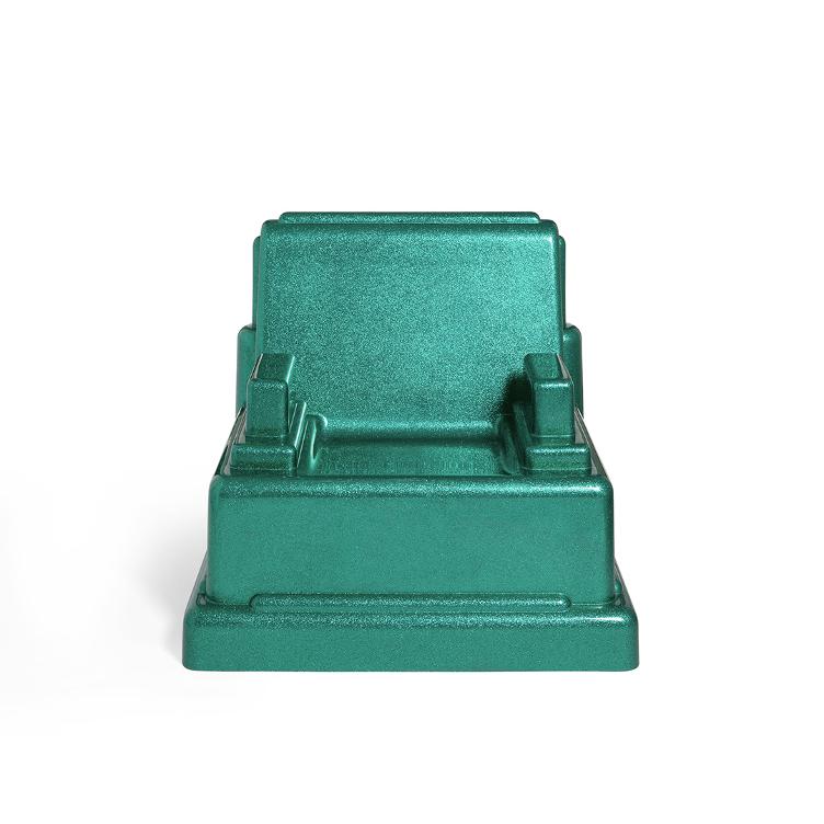 The Roma armchair was designed by Marco Zanini for Memphis Milano in 1986. The Memphis armchair is made of fiberglass with an iridescent green finish and is a true throne for any home in the style of Italian Radical Design.