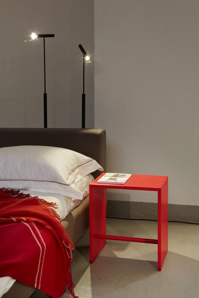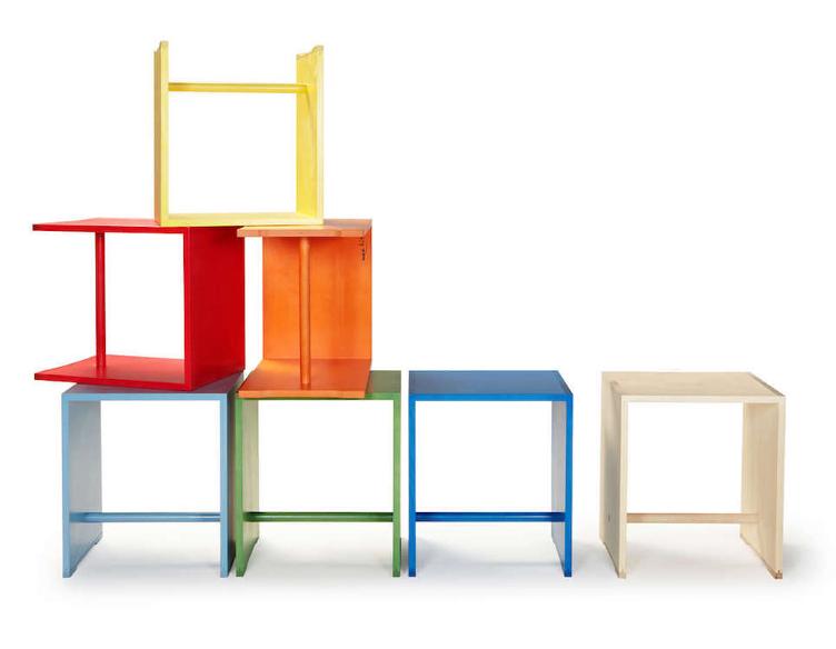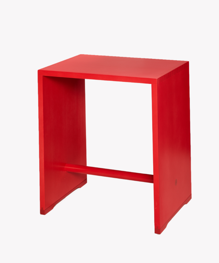 A Ulm stool in red is on display in the THRYVE Concept Store on Bärengasse, all other colors are in the Memorie Showroom on Hohlstrasse.