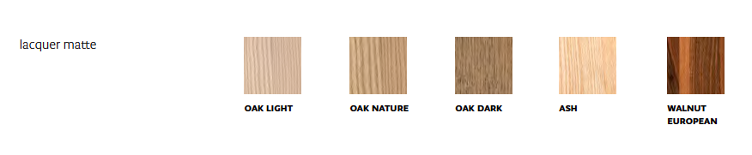 D`autres types de bois et finitions de couleurs peuvent être commandés sur demande. Le cadre de base est également disponible dans d`autres couleurs.