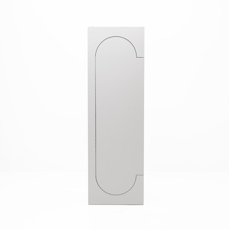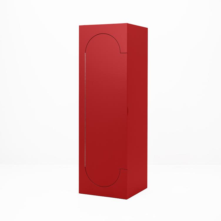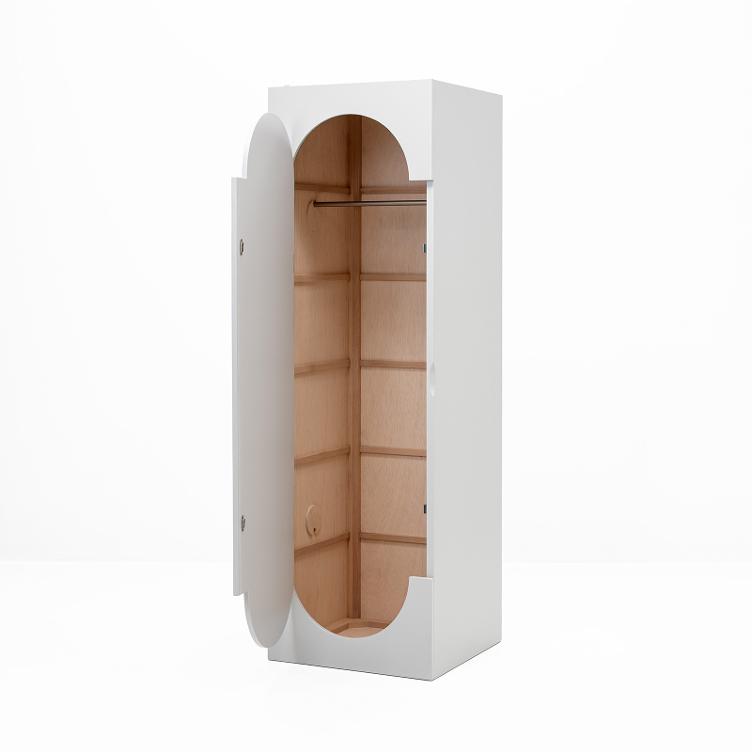 L`armoire Squadra, avec sa poignée à droite, pivote facilement à 180 degrés grâce à sa conception symétrique. On peut ainsi ouvrir la porte de l`autre côté. À l`intérieur, elle est équipée d`étagères amovibles. Contrairement aux modèles vintage produits en série, cette réédition est fabriquée en contreplaqué, dans le style original plus raffiné.
