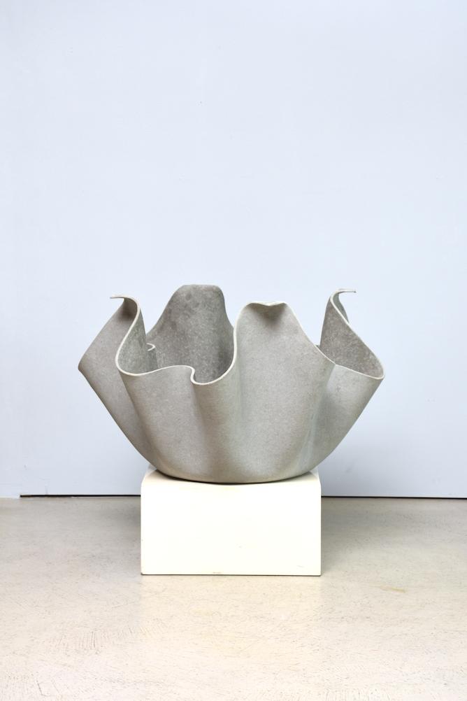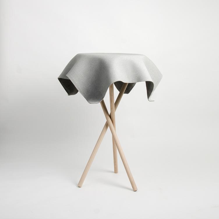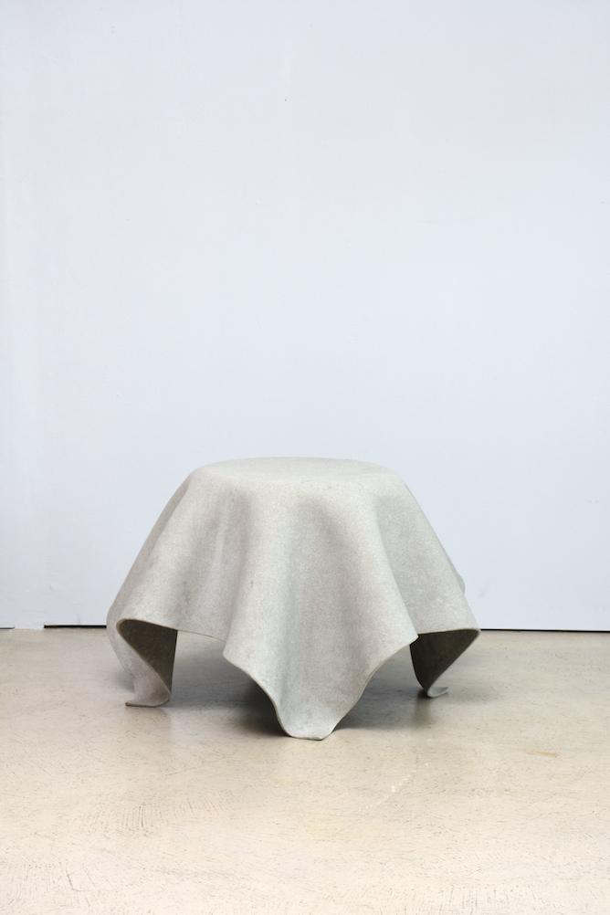 Questo oggetto unico di Fries/Zumbühl è costituito da una tavola in fibrocemento drappeggiata come una tovaglia. Grazie all`enorme stabilità del fibrocemento indurito, i designer hanno potuto aggiungere ulteriore magia alla loro idea di design: il tavolino è stabile anche senza telaio e sembra fluttuare magicamente nell`aria.