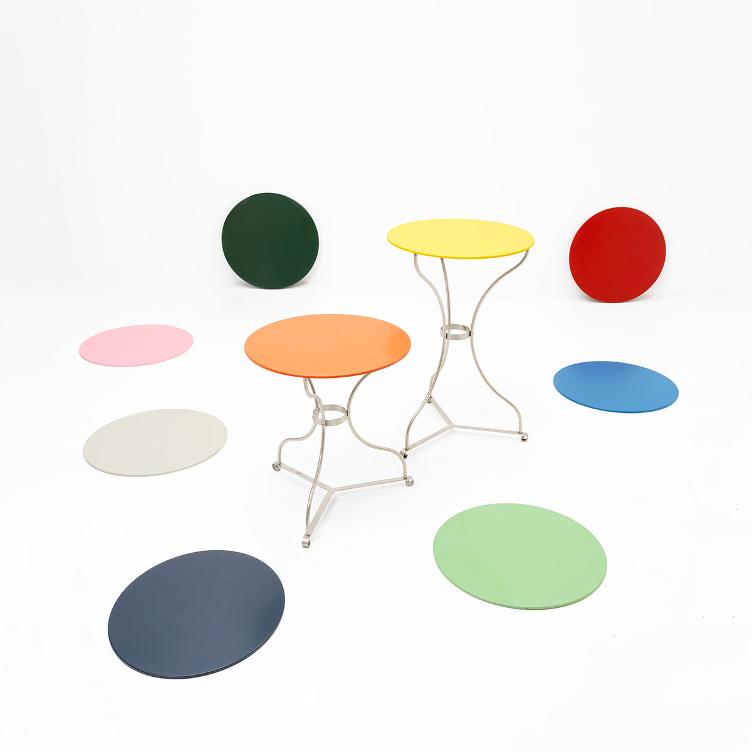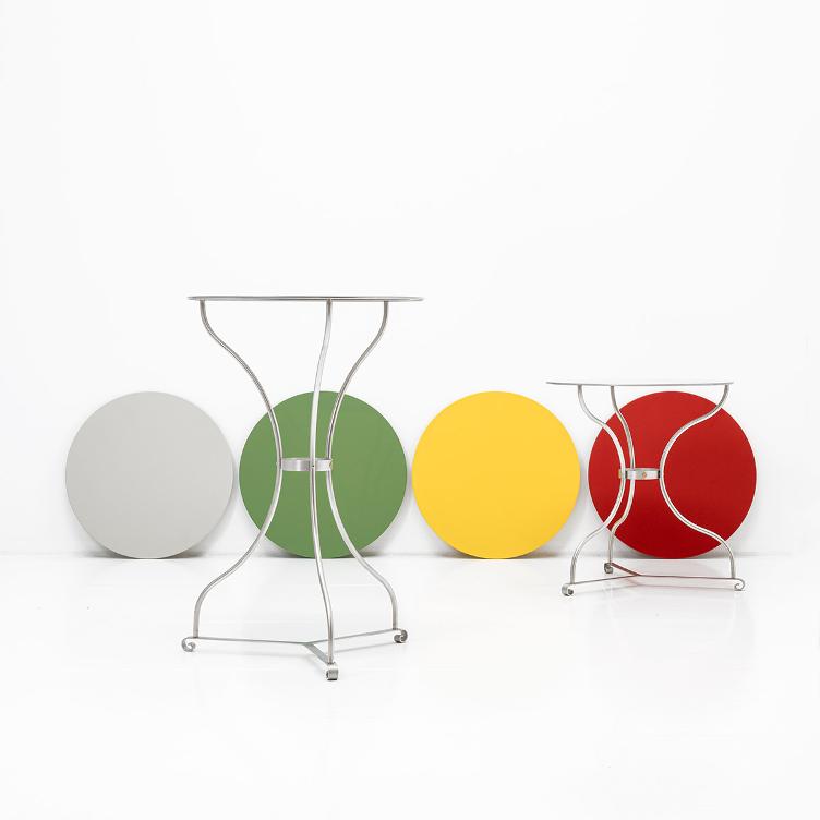 Il classico da giardino di Zurigo di Bogen33 & Partner, in acciaio inox, è prodotto interamente a Zurigo in piccoli lotti ed è disponibile sia in versione lounge che bistrot. Questi vassoi colorati sono ora disponibili su ordinazione. I ripiani verniciati possono essere facilmente posizionati sopra il piano del tavolo e sostituiti a piacere.