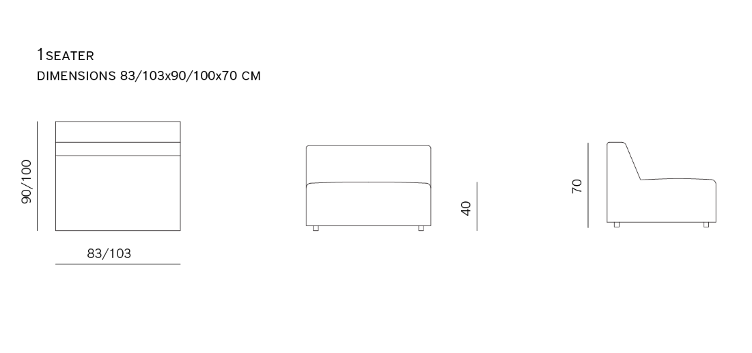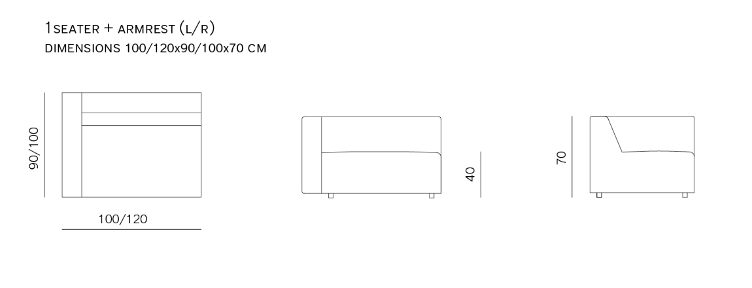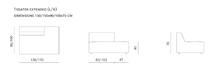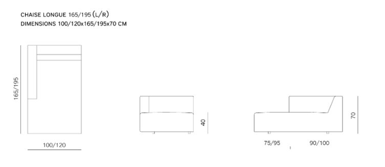 - 3 moduli (1 posto con bracciolo + 1 posto + chaise longue)