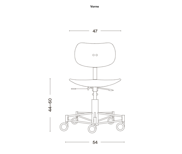 Larghezza 47 cm, profondità 42 cm, altezza 44 – 60 cm