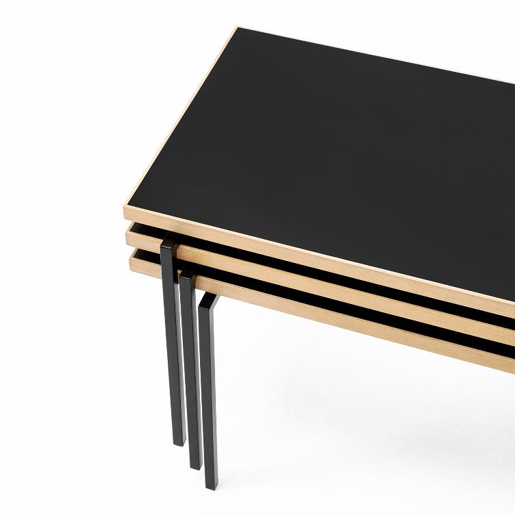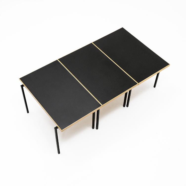 La collezione divenne rapidamente un best-seller e un successo all`estero, incluso il tavolo impilabile. Il modello è composto da tre tavolini identici in altezza, larghezza e lunghezza con gambe metalliche sfalsate che possono essere combinati per formare un tavolo da salotto allungato. Sono facili da smontare, imballati in modo compatto e spediti.