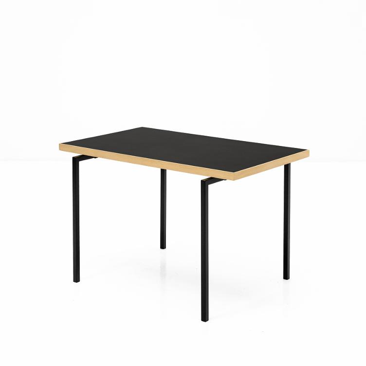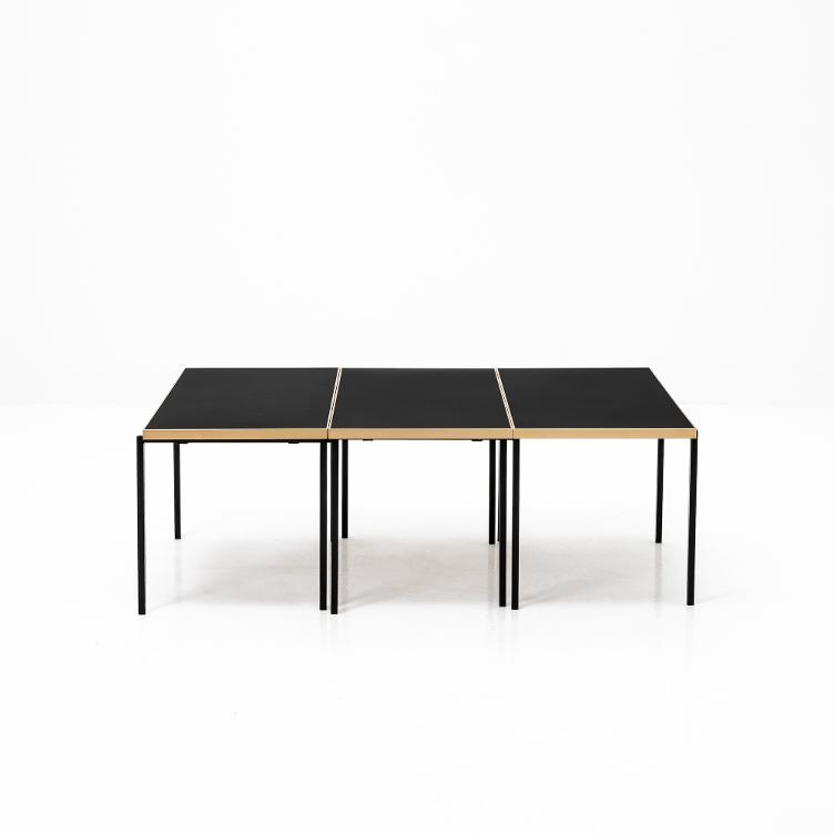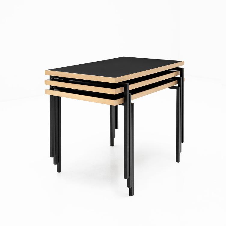Il tavolo impilabile riflette l`approccio innovativo e purista che percorre come un filo conduttore l`opera di Robert Haussmann. Haussmann lo progettò nel 1956 per "Swiss Design", il collettivo da lui co-fondato che tradusse con successo le visioni del movimento Bauhaus nei suoi classici dell`arredamento.