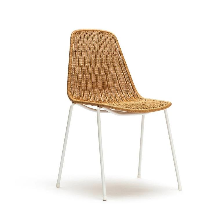 Sedia Basket Gian Franco Legler | Sedia da interno in rattan con struttura bianca