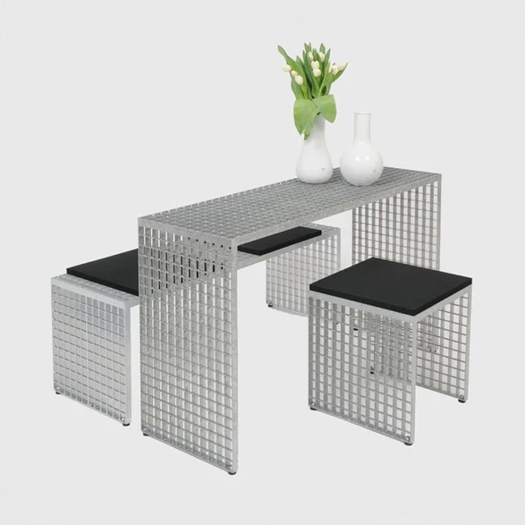 Die multifunktionalen Skwer Möbel sind aus feuerverzinktem Stahl gefertigt, Witterungsbeständig und eignen sich so ideal für den Innen- wie auch für den Aussenbereich. Im Laufe der Zeit bekommen sie eine schöne Patina und geben dem Material optisch seine Wertigkeit. Sie gliedern sich durch ihre Leichtigkeit und Transparenz wunderbar in jede Umgebung ein.