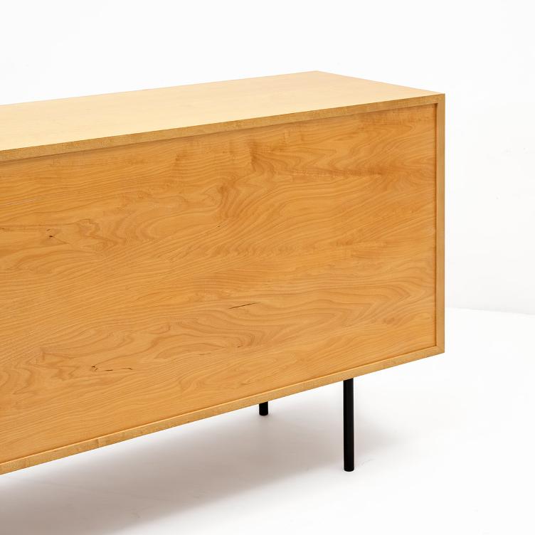 Produkt:  Kurt Thut Sideboard S943 Ahorn | Spezialausführung hellgrau Marke:  SwissFurniture (Schweiz) Designer:  Kurt Thut (Schweiz) Masse:  B160cm × H80cm × T45cm Nr.:  6739 Lieferzeit:  6 - 7 Wochen