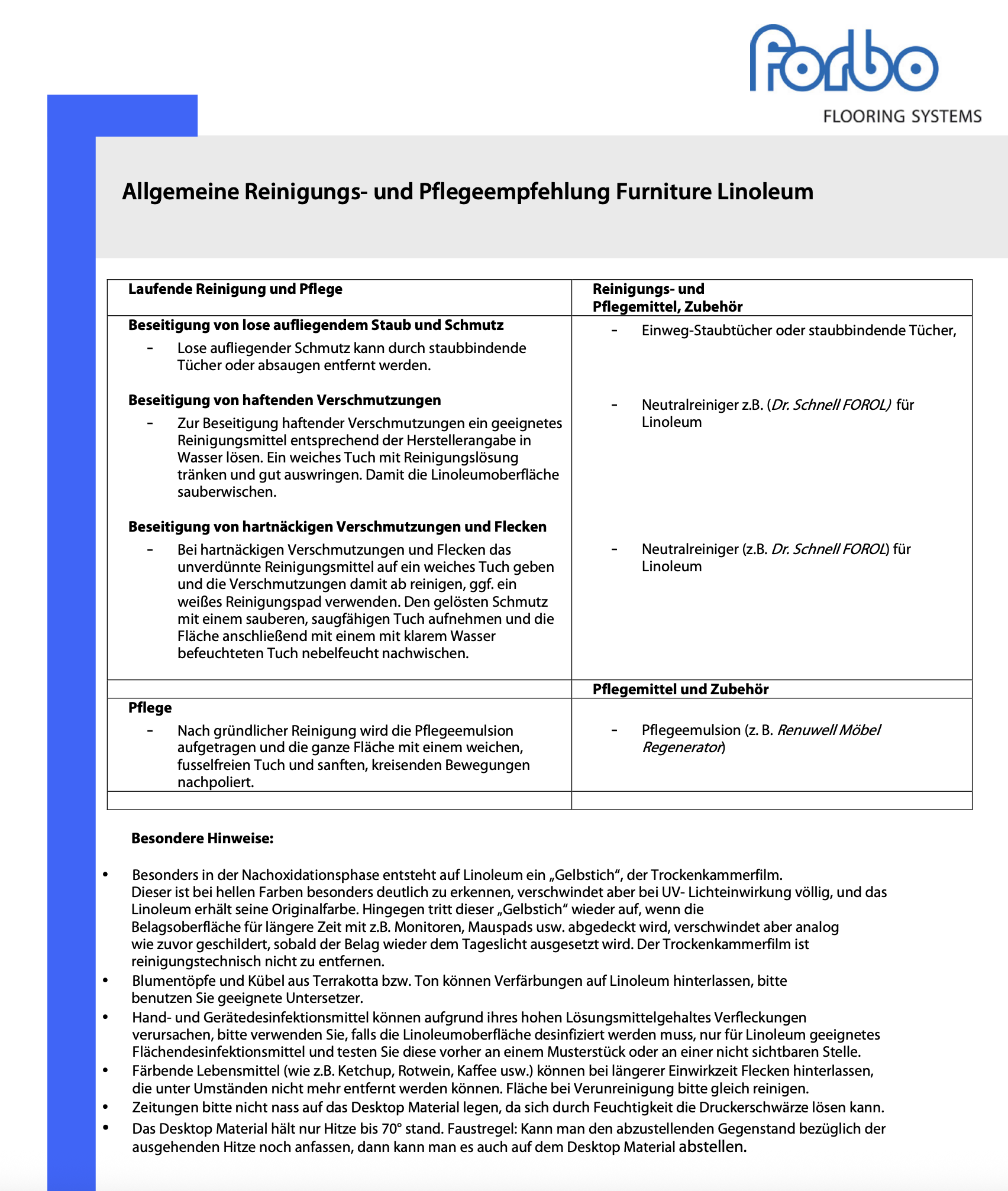 Material und Farben: