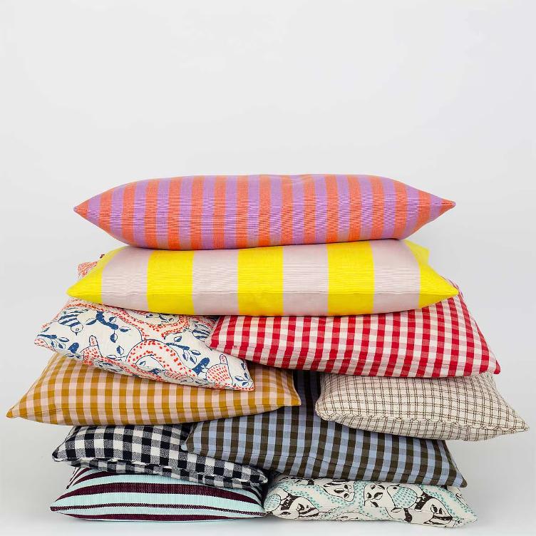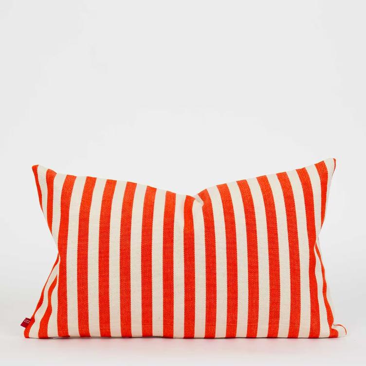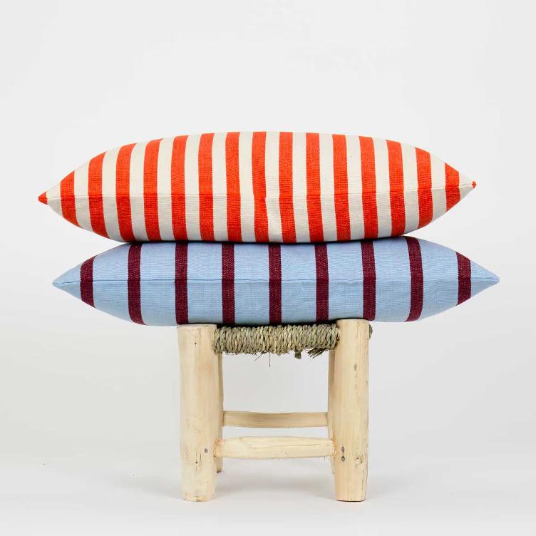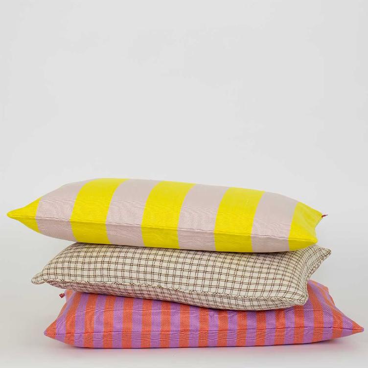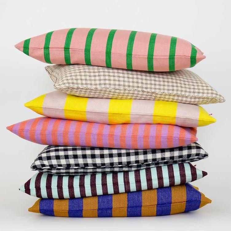 Die gestreiften Stoffe entstehen in einer besonderen Zusammenarbeit von schwedischen Designer:innen und Maya Handwerker:innen. Ihr Bestreben ist es, die einzigartige Kunst des Webens am Leben zu halten und Arbeitsplätze für die indigene Bevölkerung zu schaffen. Die Streifen und Farben sind von traditionellen Maya-Kostümen inspiriert und machen sich auf dem Sofa genauso so gut wie auf der Gartenliege.